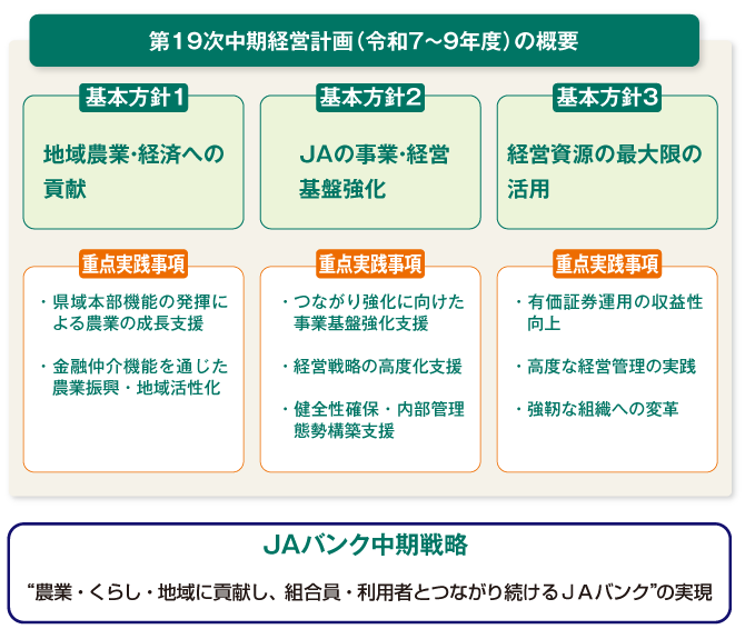 当会は、令和7年度から令和9年度までの3か年を対象とする「第19次中期経営計画」を策定し、目標達成に向けた取組みを進めています。