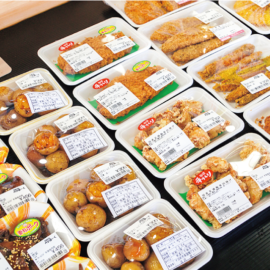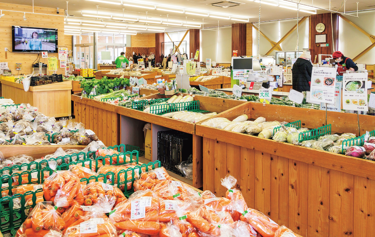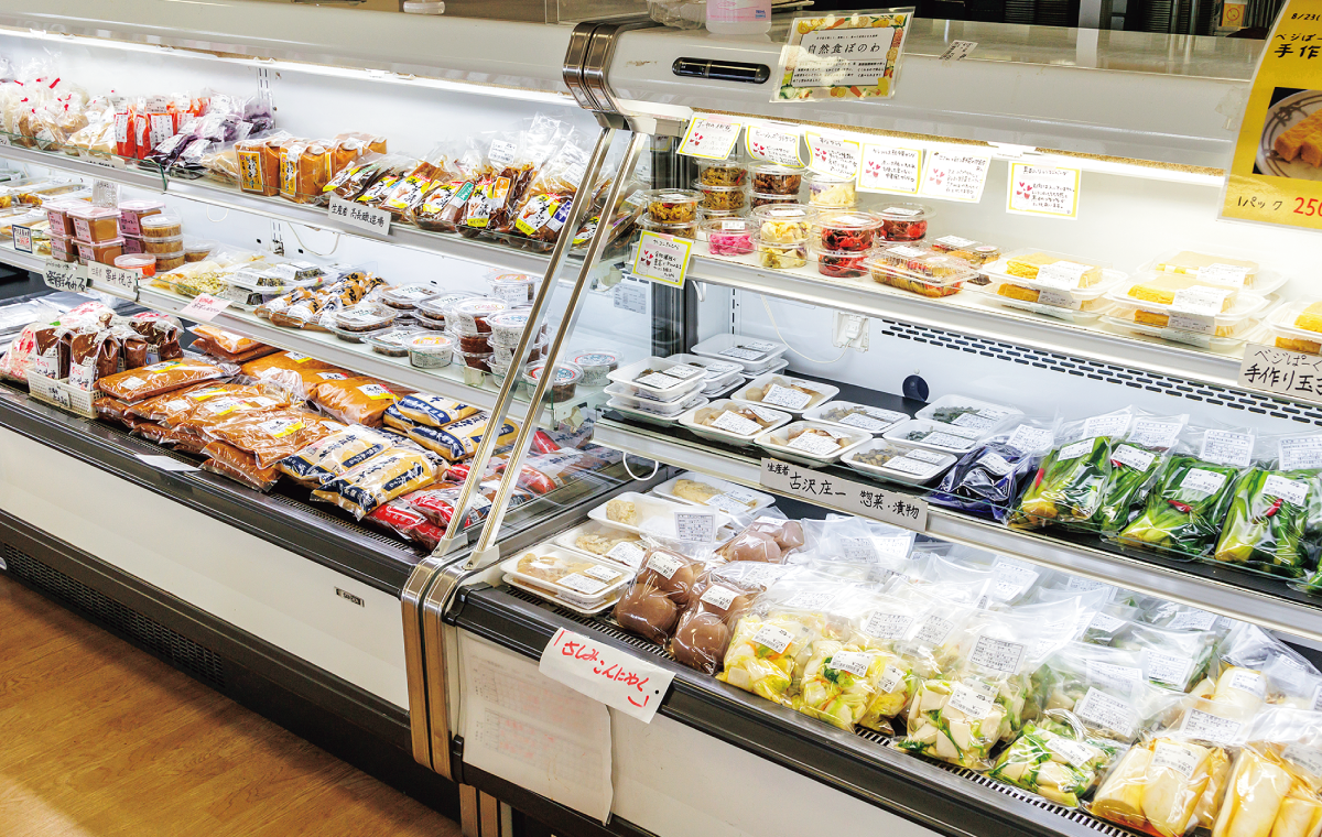 農家さんや地元の惣菜店が作るお惣菜や漬物、ベジぱーくの手作り品などが充実。基本的に、地元の野菜を使った料理が並んでいる。手作りのさしみこんにゃく、そばいなり、味噌漬けなど、地域色も豊か。熟成味噌なども揃っている。