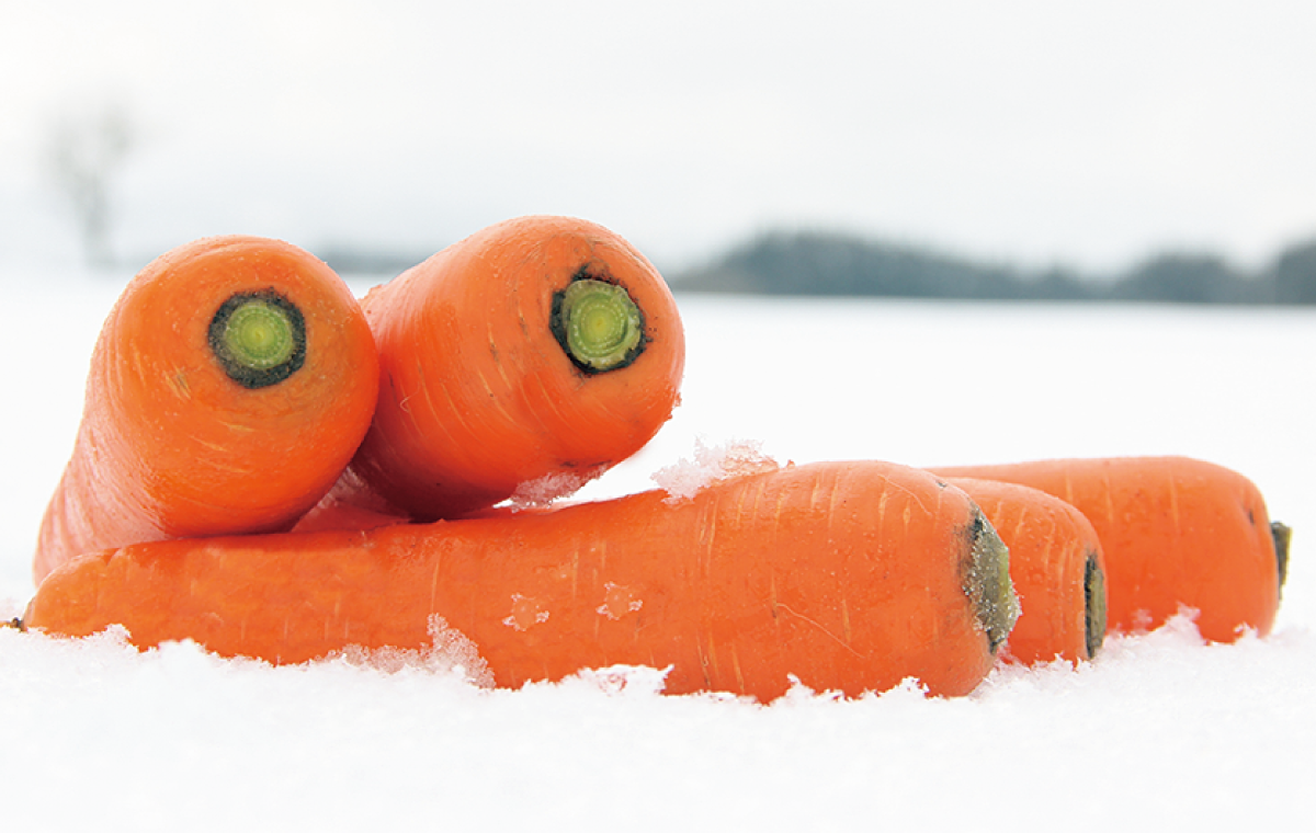 3カ月間、雪の下で冬越しをして、掘り出される雪下人参。人参特有のくさみがなく、甘くてフルーティな味わいが人気だ。3月から出荷が始まり、数に限りがあるので、見かけたら購入がおすすめ。