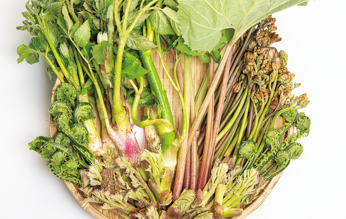 年間30種類ほども登場する山菜。その品揃えは4月がピークとなる。フキノトウから始まり、ウド、ワラビ、干しぜんまいなどが人気。5・6月には笹団子・ちまき用の笹の葉も店頭に並ぶ。