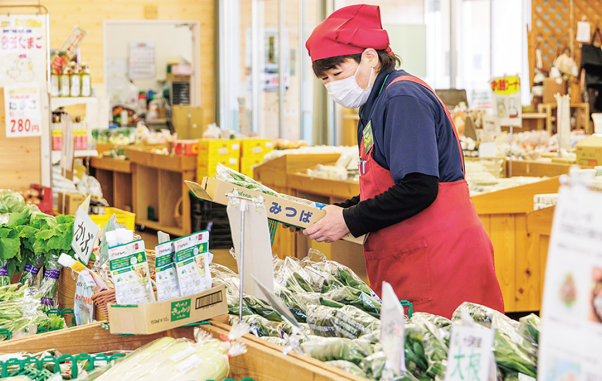 2009年のオープン以来、地元の新鮮野菜や焼き立ての米粉パンが好評のベジぱーく。「当店の一番の強みは、少量多品種の野菜が並ぶこと。約350名いる生産者さんがそれぞれに工夫していて、他では余り見かけない、変わった野菜もたくさん登場します。農産物の種類は年間240種類にもなり、品目数では規模の大きな直売所に負けないと思っています」と担当の小海さんは話す。なかには「生産者の〇〇さんが作るあの野菜を毎年楽しみにしている」という固定ファンもいるそうだ。そして、野菜のなかでもアスパラの入荷は充実。「当店では年間2位の売り上げを誇る野菜です。5・6月のピーク時には中央の台がアスパラで埋まるくらいになるんですよ。初秋まで楽しめるので、たくさん召し上がってください」。