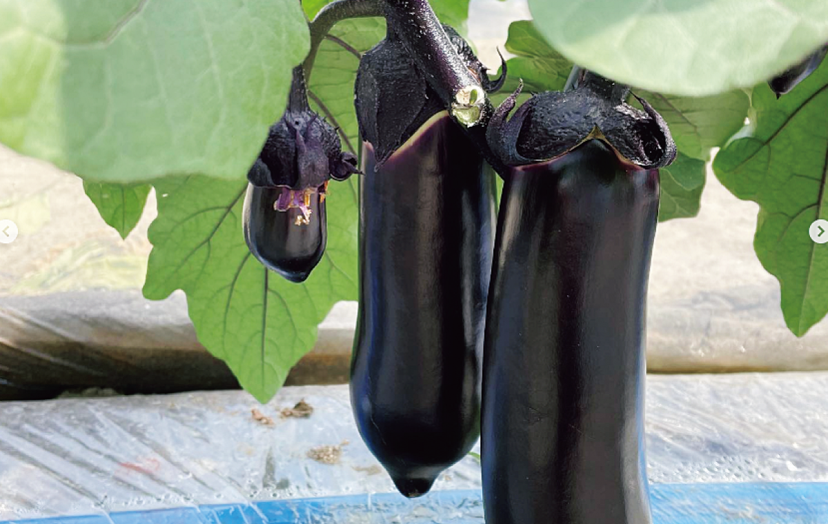 新潟市北区の木崎地区で品種選抜され、その地域だけで作られている希少なナス。皮も果肉も柔らか。その名の通り、焼きなすに向いていて、加熱するとジューシーでとろりとした食感に。6月中旬から登場する。