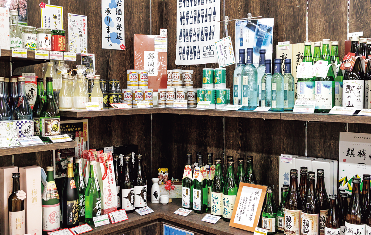 上・中・下越、佐渡の各地域を代表する酒蔵の日本酒を取り揃えている。飲み比べしやすいサイズやワンカップなどが揃っているほか、クラフトビールやワインも扱われている。ギフト用などの詰め合わせや、地方発送にも応えてくれる。