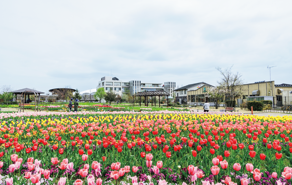 キラキラマーケットがあるいくとぴあ食花は、食育・花育センターを始めとする公的施設やレストラン、季節の花や緑で彩られるガーデンなどがある市民の憩いの場。マーケットで買った弁当やパン、スイーツやドリンクなどを、ガーデンで楽しむのもおすすめ。