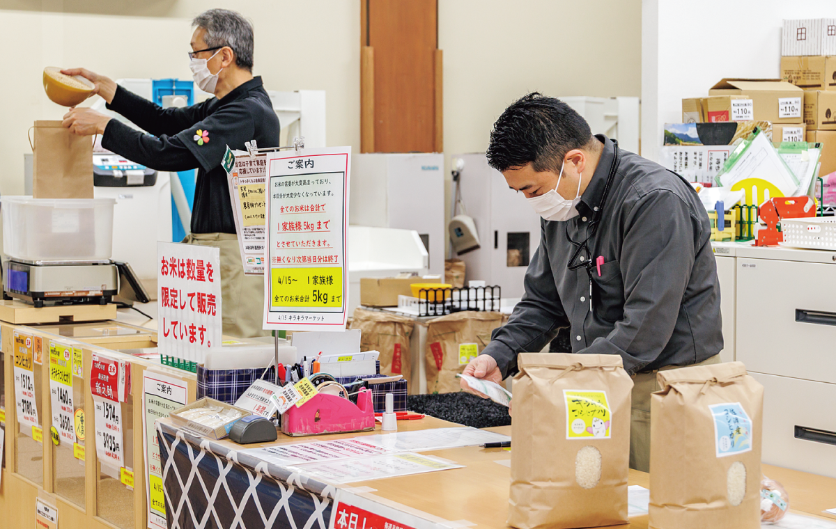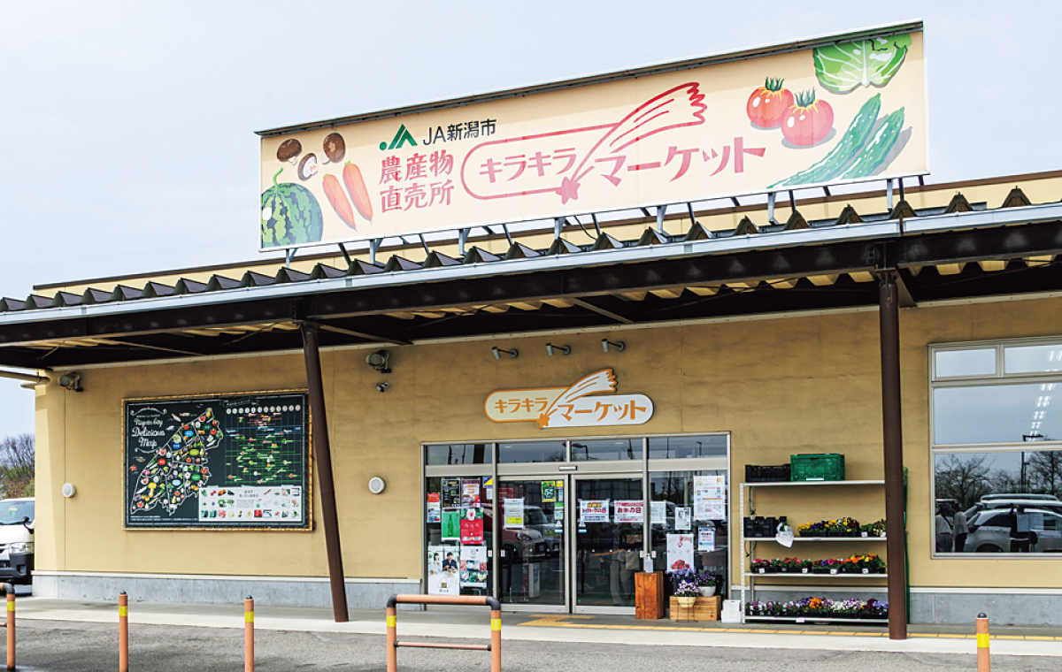 新潟市のいくとぴあ食花内にあるキラキラマーケットは、連日、開店前にお客様が列を作る人気の直売所。天気のいい日にはガーデンの散策の途中に立ち寄る人も多い。「JA新潟市のエリアは平地で、野菜や果物、切り花の種類が豊富。特にトマトは通年で出荷されています。登録生産者は450名で、1日80~100名の農家さんが農産物を納入してくれています」と佐藤義孝マネージャーは話す。月に2回、旬に合わせたフェアやイベントを開催しているほか、火曜はお肉の日、木曜はたまごの日として商品がお買い得になったり、月末・週末には100円市を開催したりするなど、買い物が楽しくなる仕掛けも用意されている。また、選んだ品物をギフト用に発送するのもスムーズだ。「今後も多くの皆さんに、地元の農産物の良さを伝える場にしていきたいと思います」。