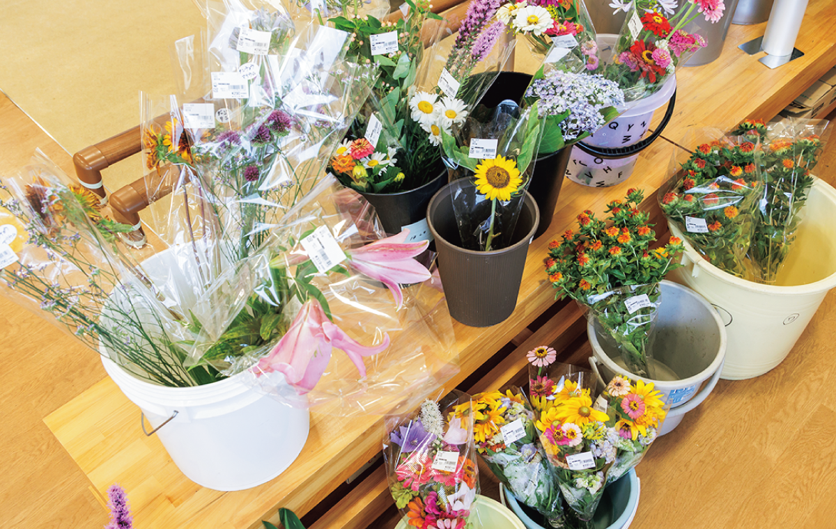 花専門農家や、野菜農家から届く季節の切り花が充実。特にお盆や春・秋の彼岸の時期には、お供え用の切り花が種類豊富に並ぶ。鮮度が良く、花の種類も豊富。さらに、手頃な価格で販売されている点もうれしい。