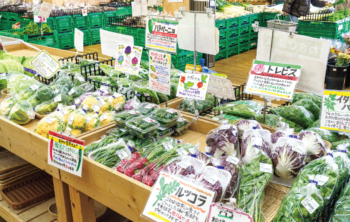 佐渡島内で最大規模の直売所の「新鮮空間 よらんか舎」。気候風土に恵まれている佐渡では多彩な農産物が生産されているので、バラエティに富んだ売り場となっているのが特徴だ。「島内は広いので、店から遠いエリアは配送車が回って商品をピックアップしてきて、毎日新鮮な野菜が並んでいます」と宇佐美店長は話す。会員生産者は現在約500名。年々増えているというのが明るい話題だ。最近は観光客が立ち寄る機会も増え、特に柿や佐渡りんご、黒イチジクのビオレ・ソリエスをはじめとする季節のフルーツや、それらを使ったジャムなどの人気が高いそうだ。自然環境に配慮しながら育てられた佐渡米も注目されている。「農家の皆さんが一生懸命に作ってくださったおいしいものを、消費者の方々にお届けするために、今後もPOPなどを使って魅力を分かりやすくPRしていきたい」と宇佐美店長。お土産におすすめの商品も一層充実させていく予定だ。