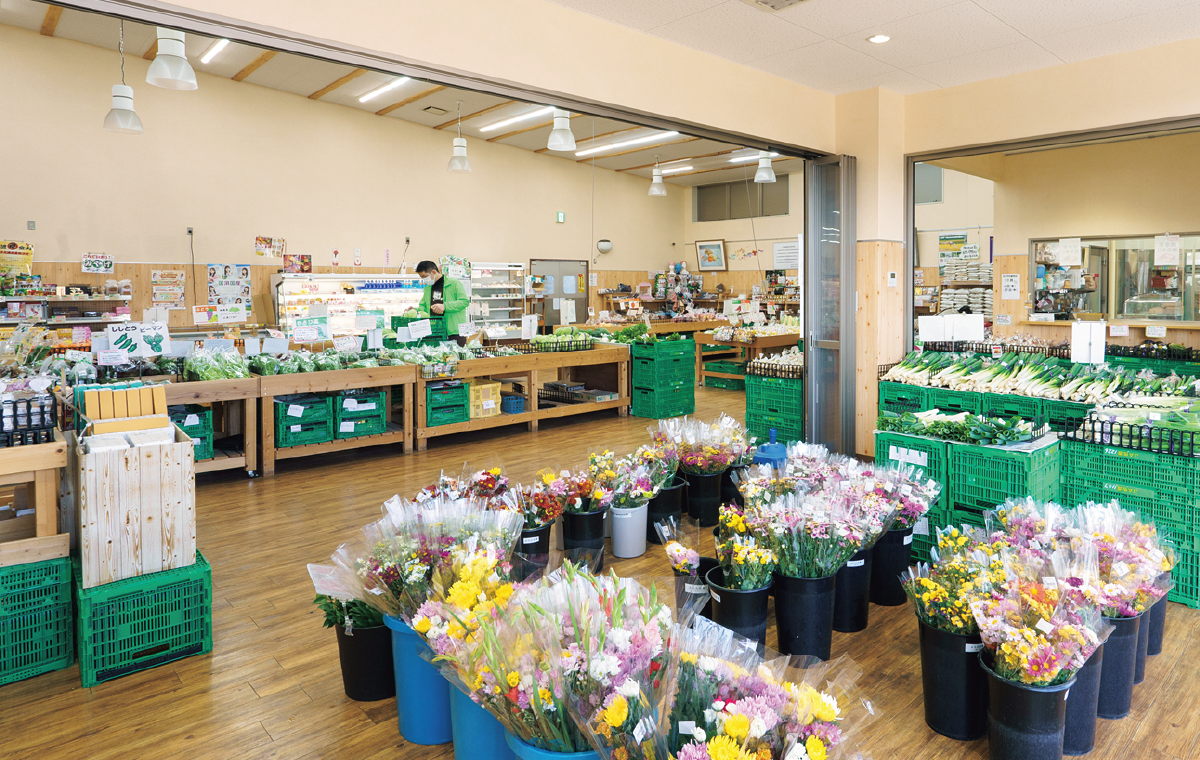 佐渡島内で最大規模の直売所の「新鮮空間 よらんか舎」。気候風土に恵まれている佐渡では多彩な農産物が生産されているので、バラエティに富んだ売り場となっているのが特徴だ。「島内は広いので、店から遠いエリアは配送車が回って商品をピックアップしてきて、毎日新鮮な野菜が並んでいます」と宇佐美店長は話す。会員生産者は現在約500名。年々増えているというのが明るい話題だ。最近は観光客が立ち寄る機会も増え、特に柿や佐渡りんご、黒イチジクのビオレ・ソリエスをはじめとする季節のフルーツや、それらを使ったジャムなどの人気が高いそうだ。自然環境に配慮しながら育てられた佐渡米も注目されている。「農家の皆さんが一生懸命に作ってくださったおいしいものを、消費者の方々にお届けするために、今後もPOPなどを使って魅力を分かりやすくPRしていきたい」と宇佐美店長。お土産におすすめの商品も一層充実させていく予定だ。