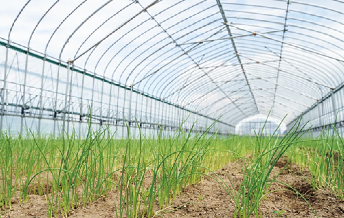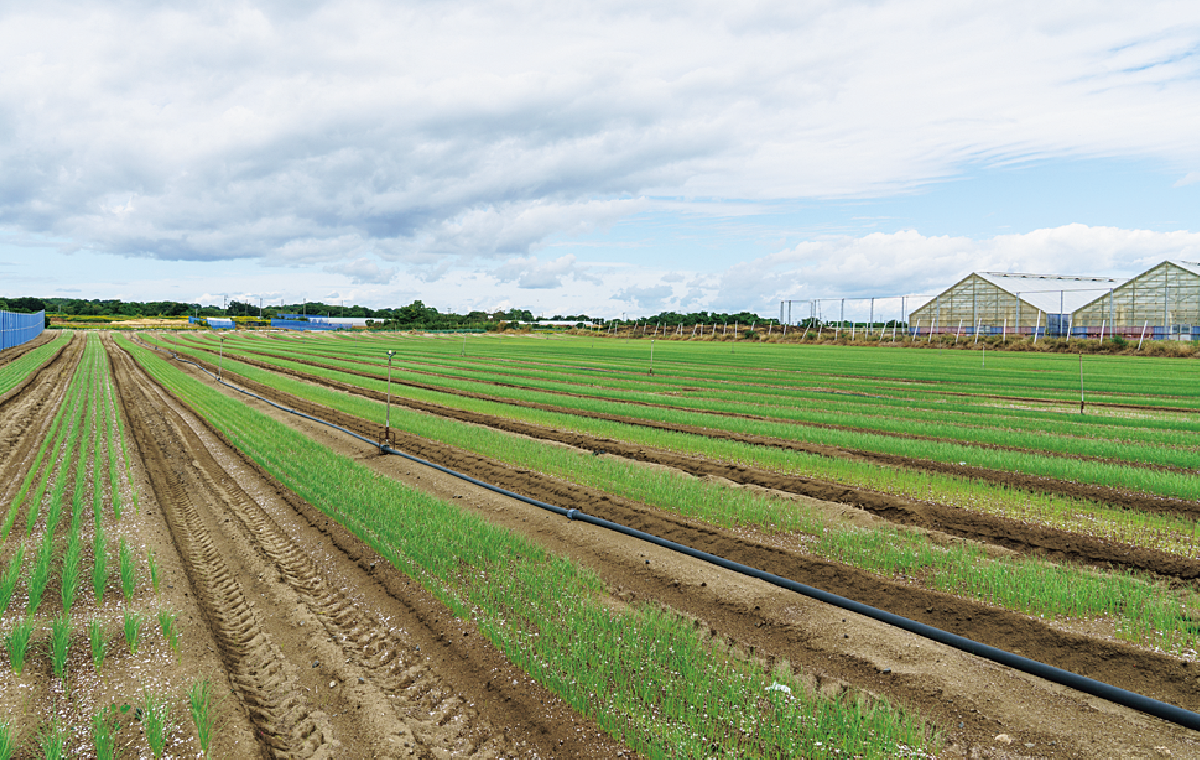 玉ネギの苗は露地とハウスで栽培。天候に左右されずいずれかで作業ができて合理的であるとともに安定供給にもつながっている