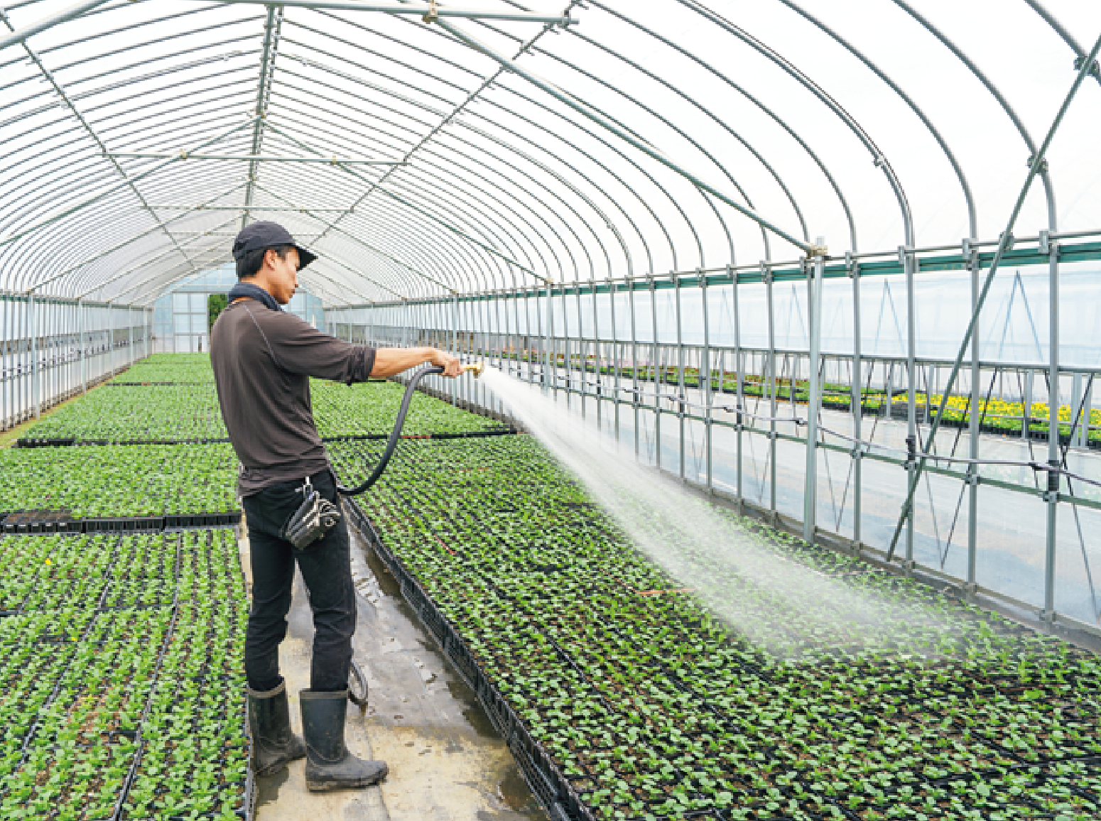 タッグを組んだのが、それまでもひらせいに野菜苗を納入していた山本苗屋の常務の山本学さん。「まずは挑戦してみよう」が信条の山本さんが周囲に声をかけ、10人ほどの仲間と共に生産を行っている。