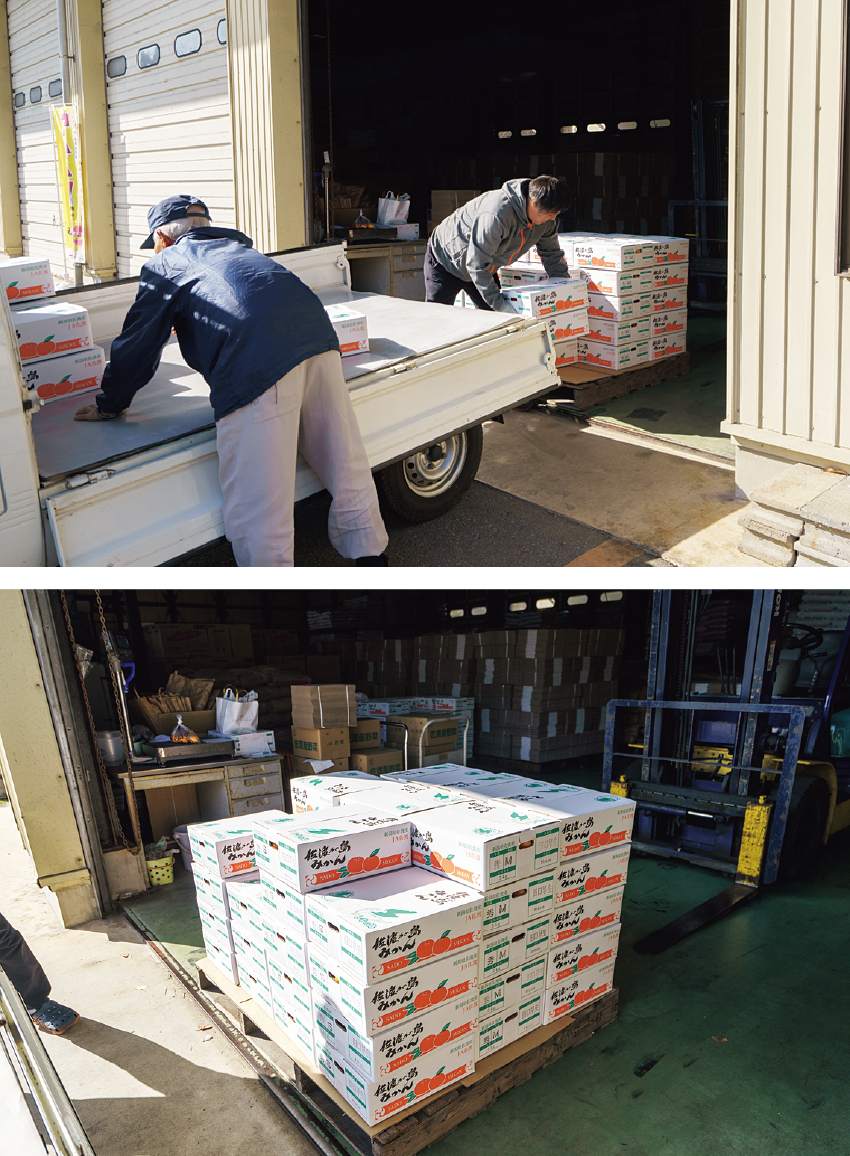 代表品種は和歌山生まれのゆら早生と田口早生。収穫はゆら早生が10月末から始まり、2週間ほど後に田口早生が続く。年内にはほとんどの出荷が終了するというスケジュールだ。佐渡みかん倶楽部としての決まりは、実が色づくまでは木に置いておくこと。そして1週間から10日寝かせてから出荷となる。「収穫した直後はまだ酸味が勝っているんです。寝かせることで酸味が落ちついて、甘みとのバランスが良くなります」。